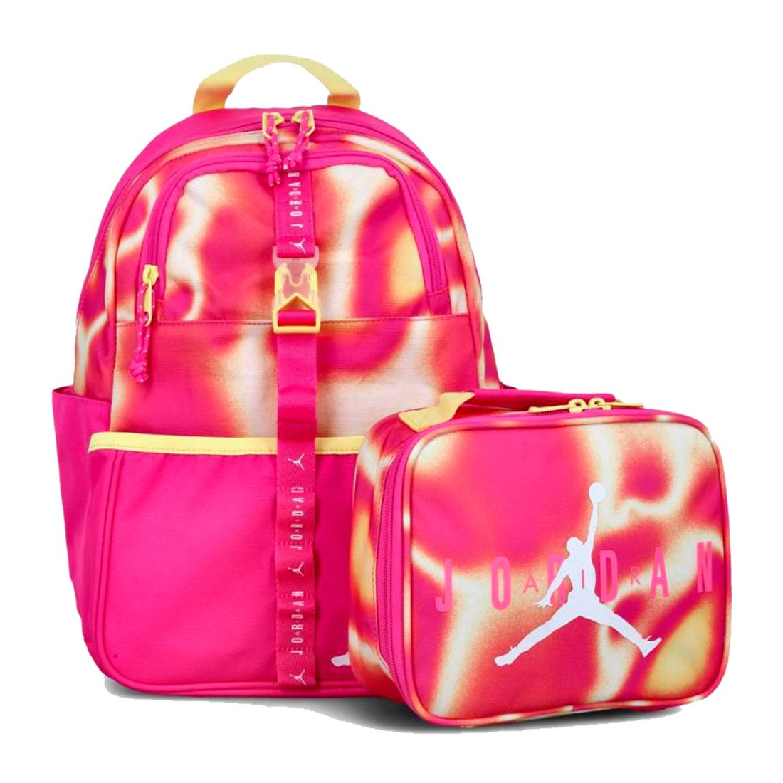 Jordan Zaino pranzo Air JDB Laser Fucsia. Questo set di zaino e cestino per il pranzo ricorda un canguro che trasporta il vostro piccolo. Lo scomparto principale con cerniera è spazioso e contiene una custodia imbottita per il computer portatile. Una tasca frontale con cerniera consente un accesso facile e veloce ai piccoli oggetti.
