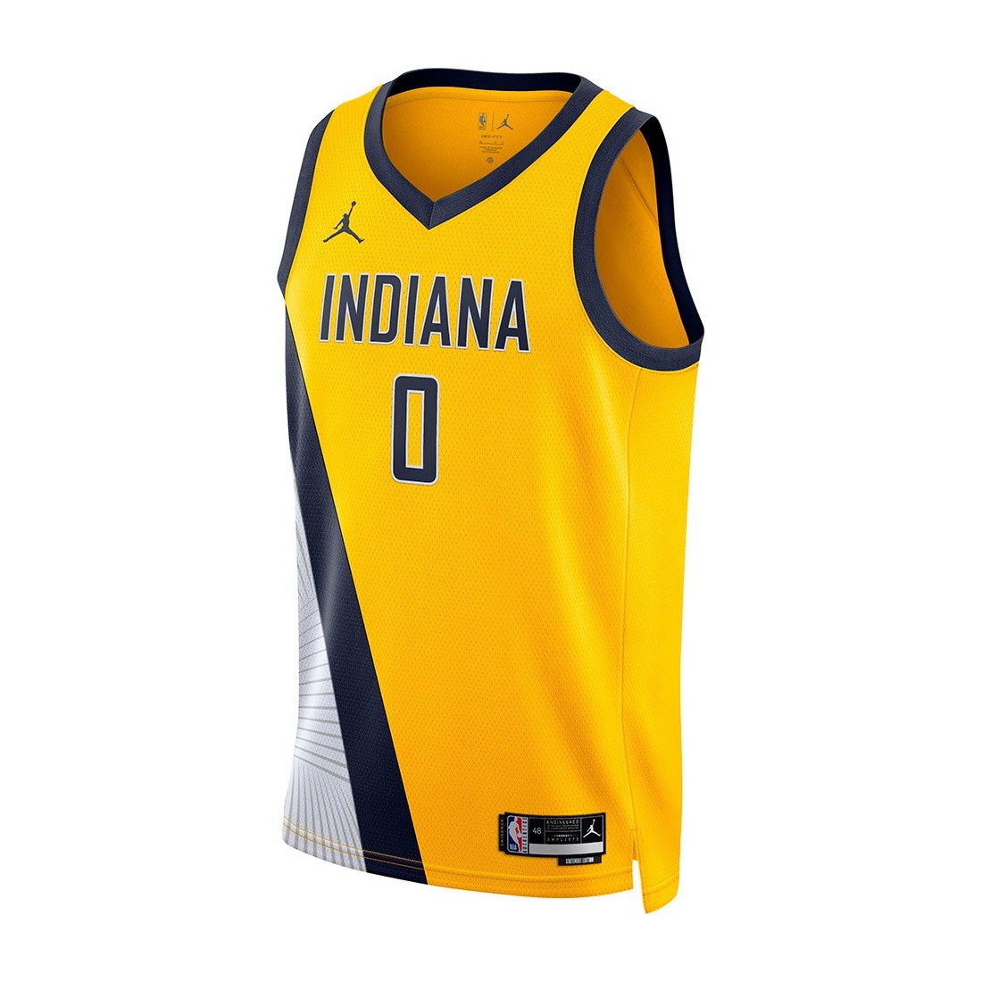 Junior Tyrese Haliburton Indiana Pacers Statement Edition Swingman. Ogni squadra ha i propri colori, un'identità distintiva che la contraddistingue dal resto della lega. Rendendo omaggio a una grande tradizione cestistica, questa maglia degli Indiana Pacers si ispira direttamente al look che i professionisti indossano in campo, dai dettagli della squadra al mesh leggero e in grado di assorbire il sudore. Rimani traspirante e fresco dentro e fuori dal campo mentre fai il tifo per la tua squadra del cuore e pratichi lo sport che ami.