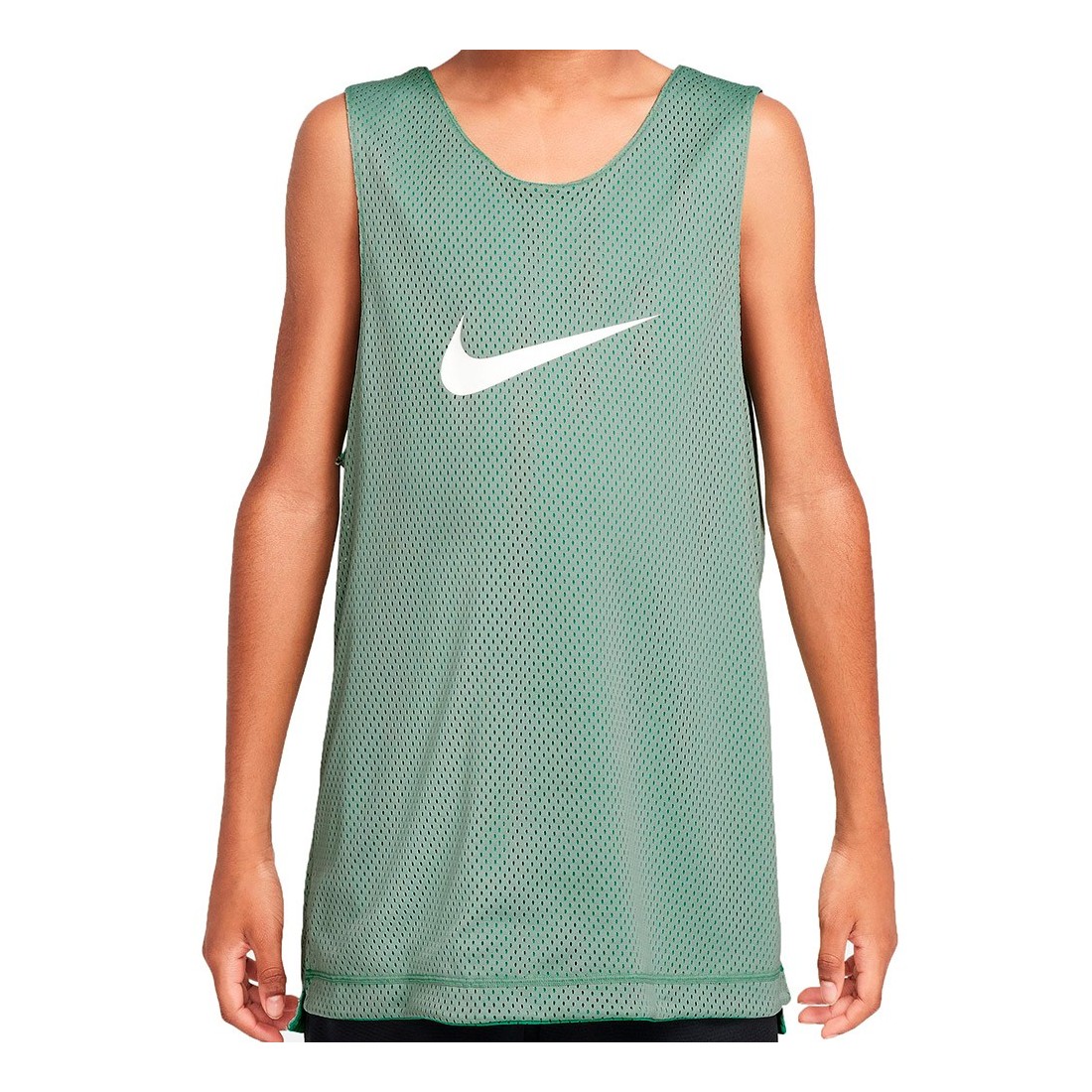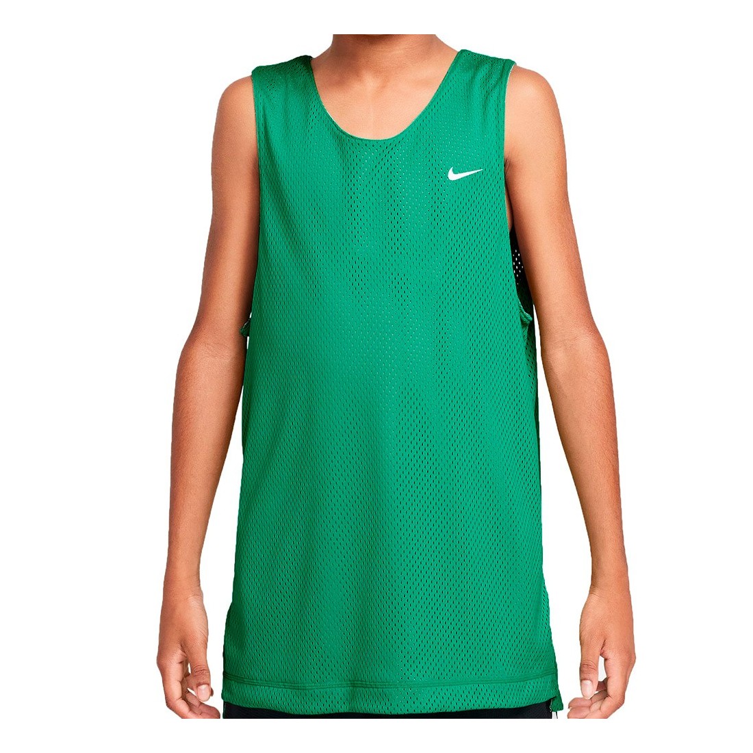 Maglietta Junior Nike reversibile Dri-FIT verde. Questa t-shirt reversibile e spaziosa consente di cambiare facilmente il proprio abbigliamento o il proprio look. Realizzata in mesh leggero e con tecnologia di traspirazione del sudore, mantiene freschi e comodi durante il gioco.