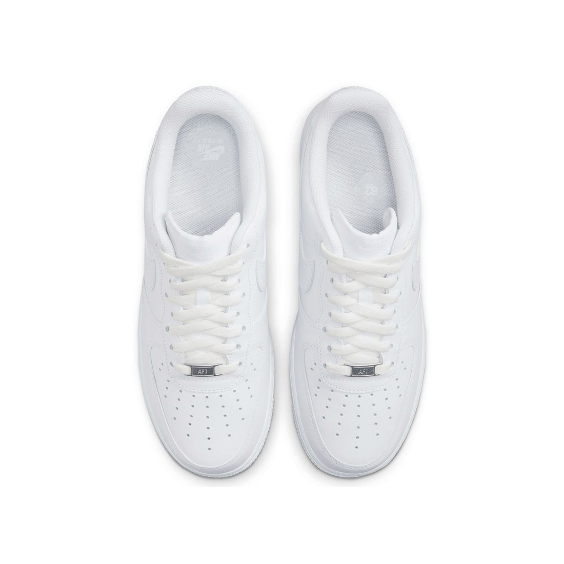 Nike Air Force 1 '07 Bianco. Comoda, resistente e senza tempo. La classica costruzione anni '80 si combina con pelle resistente e tessuti ripstop per una struttura robusta. L'ammortizzazione Nike Air garantisce un comfort duraturo, mentre i dettagli catarifrangenti e la suola blu smerigliata aggiungono uno stile audace, che si ritrova sia in campo che in viaggio.