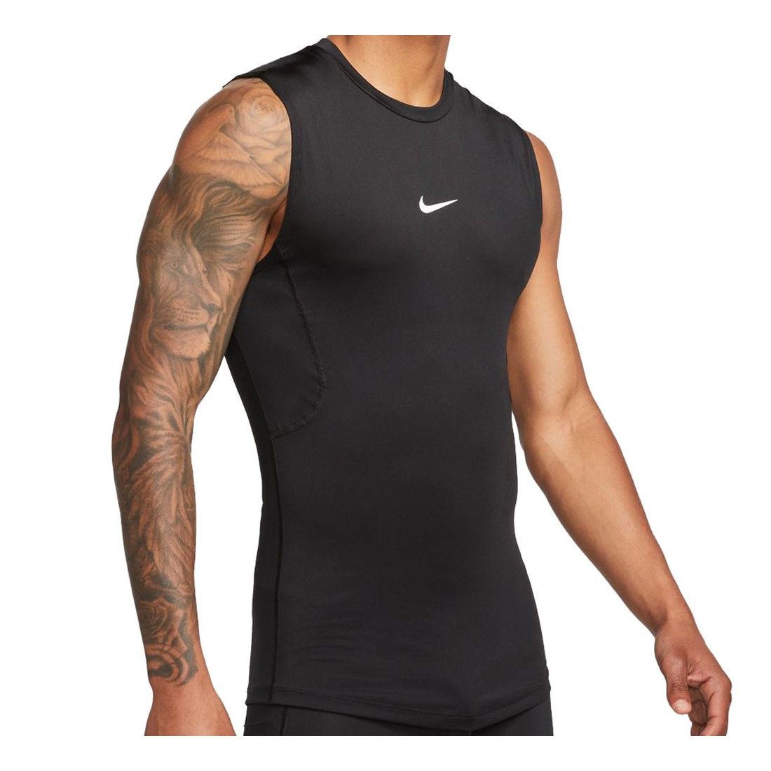 Nike Maglietta Pro Dri-FIT Tight Sleeveless Fitness Nero . Nike La Pro Dri-FIT Tight Sleeveless Fitness T-Shirt è realizzata in tessuto leggero e traspirante nelle zone che generano più calore per mantenere il comfort dal riscaldamento al raffreddamento. Il tessuto elasticizzato e la vestibilità aderente consentono di indossarla sotto altri top.