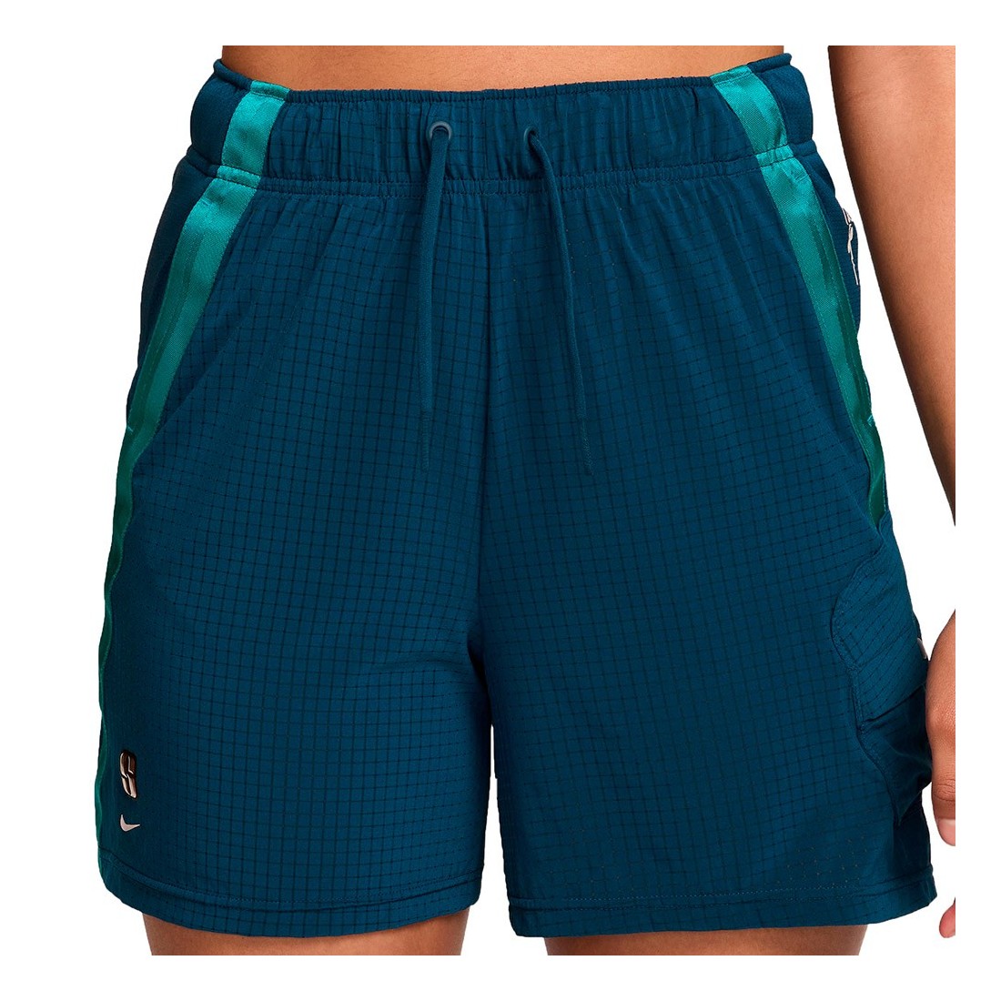Nike Pantaloncini da donna Sabrina Valerian Blue. Questi pantaloncini da basket di facile vestibilità sono realizzati in tessuto traspirante e traspirante e con la giusta elasticità per mantenervi fresche a ogni passaggio, giro e giocata. Sulla gamba è presente una tasca cargo con chiusura a scatto e due tasche laterali per riporre tutti i vostri oggetti. Se di solito indossate modelli da donna, vi consigliamo di scegliere la vostra taglia abituale. Se indossate modelli da uomo, scegliete una taglia in più.