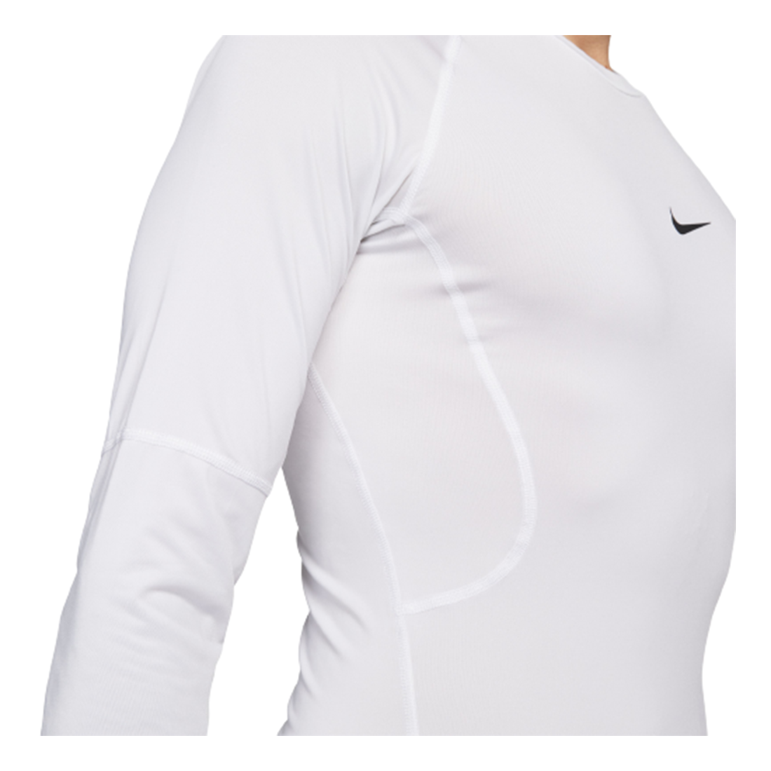Nike Dri-Fit Tight Top Bianco. Nike La collezione Pro offre la sicurezza necessaria per dare il massimo, sia che siate alle prime armi sia che vi dedichiate ad allenamenti ad alta intensità. Questo top aderente offre la morbidezza e l'elasticità necessarie per lo sport o l'attività che preferite. Inoltre, i nostri designer hanno creato un orlo arrotondato per due motivi: una maggiore protezione e una vestibilità sicura quando viene infilato sotto i pantaloni.