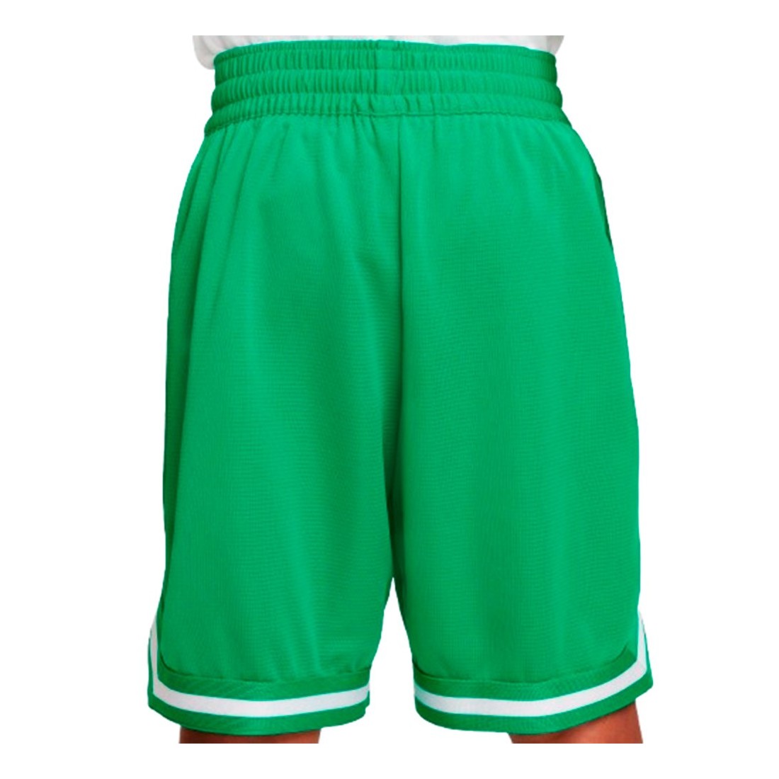 Pantaloncini junior Nike DNA Dri-FIT Stadium Green. Questi pantaloncini da basket spaziosi sono perfetti per tutto, dagli allenamenti in casa alle partite al parco con gli amici. Il confortevole tessuto a maglia allontana il sudore dalla pelle per mantenerti fresco e concentrato durante i dribbling, gli avanzamenti e il tiro decisivo. Inoltre, la tasca con cerniera tiene al sicuro i piccoli oggetti essenziali mentre si corre in campo per la prossima schiacciata.