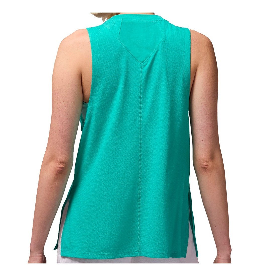 T-shirt da donna Jordan Sport Diamond Washed Teal. Questa canotta da donna di Jordan offre comfort leggero, morbidezza, sofficità e libertà di movimento. È leggermente più corta con spacchetti laterali per garantire traspirabilità e flessibilità.