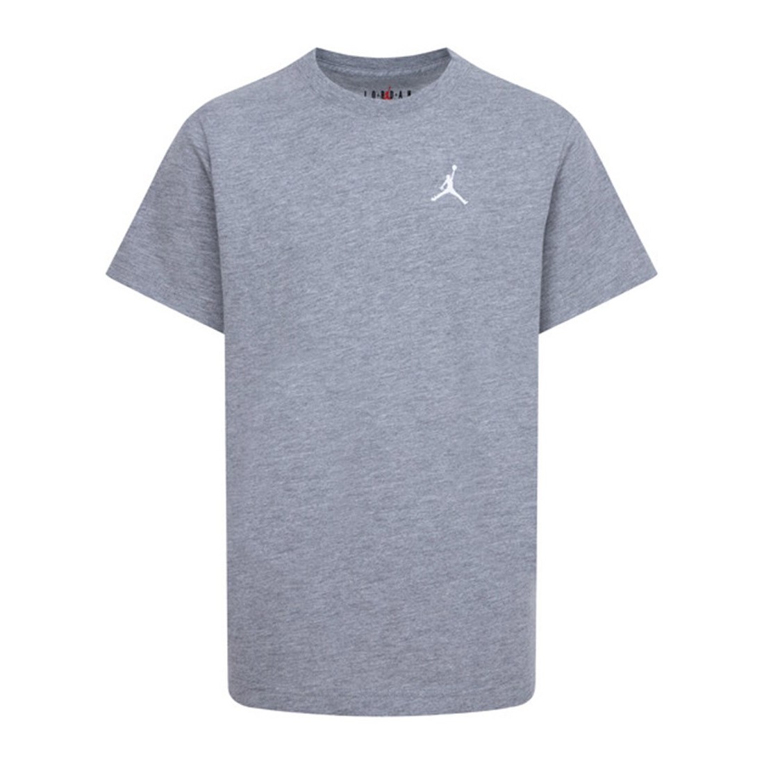 T-shirt Junior Jordan Jumpman Air ricamato Carbon Heather. la T-shirt Jumpman Air di Jordan unisce stile e comfort per i giovani appassionati di basket. Realizzata al 100% in cotone, è morbida e confortevole sulla pelle. Il design a girocollo a maniche corte presenta l'iconico logo Jumpman ricamato sul petto a sinistra, aggiungendo un tocco distintivo.