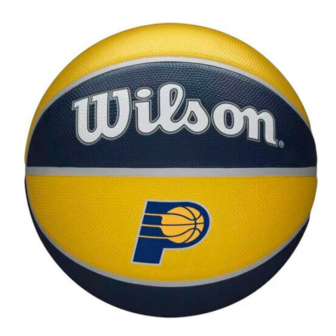 Wilson Indiana Pacers NBA Pallone da basket tributo alla squadra. Questo pallone da basket Wilson degli Indiana Pacers presenta un motivo alternato dei colori primari e secondari della squadra sui pannelli della superficie, con il logo della franchigia NBA in evidenza. La copertura Performance è progettata per affrontare qualsiasi campo da gioco, con un grip resistente per le superfici ruvide. Taglia 7.